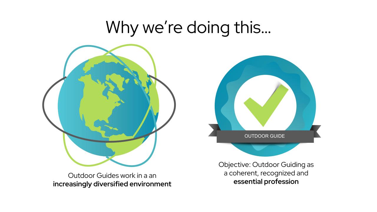 - Establishing benchmarks: Strong National Occupational Standards will establish a strong benchmark of professionalism in the outdoor industry, regardless of the technical context of a guide or operator.